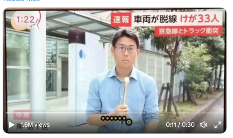 事故で現場から報道する岸信千代氏だがスタッフから「大きい声で!」と指摘され、さらには岸信千代氏は何を話すべきか分からなかったのかテレビではタブーとされる3秒ほど空白を作ってしまう。