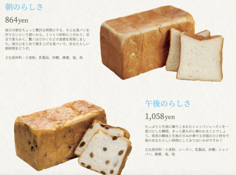 864円とかなりの高級パンでだ。他にもレーズン入りのパンなどと食材にこだわった自信作ばかり。
